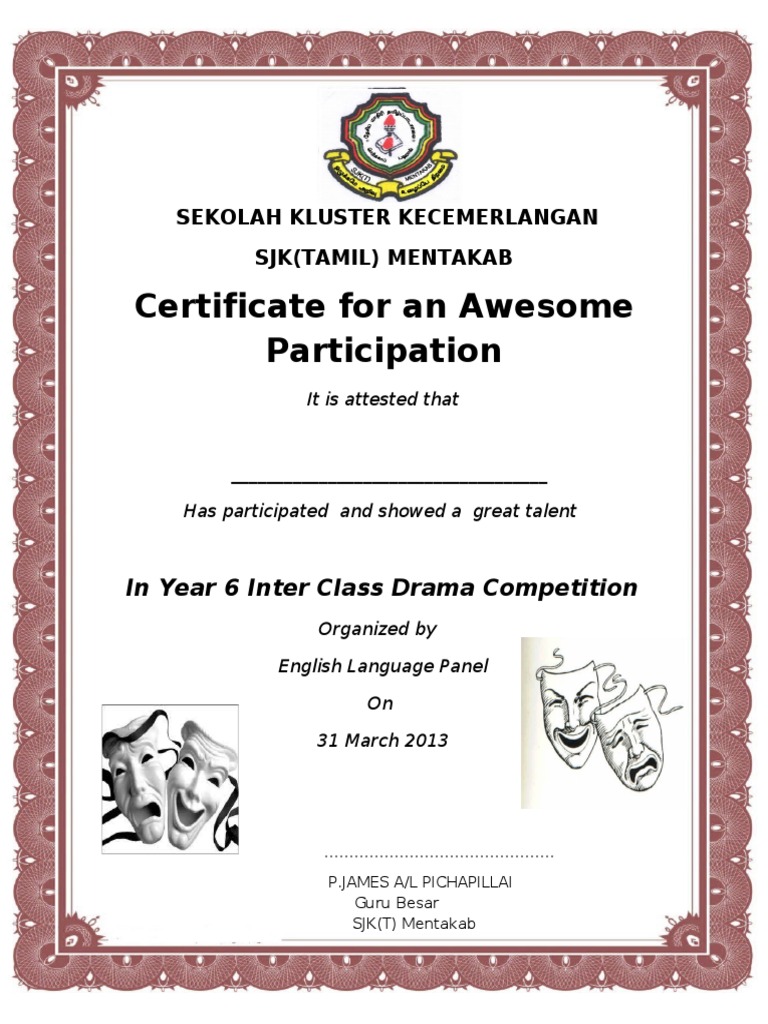 English Drama Competition Certificate 2013