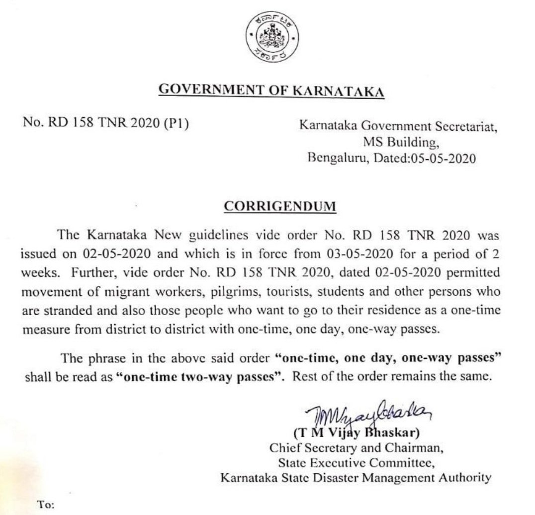 K Taka Health Dept On Twitter If You Have Permission You Can Travel By Rental Car The Latest Order Of Hon Ble Cs Say S That One Way Pass Can Also Be Considered As Two