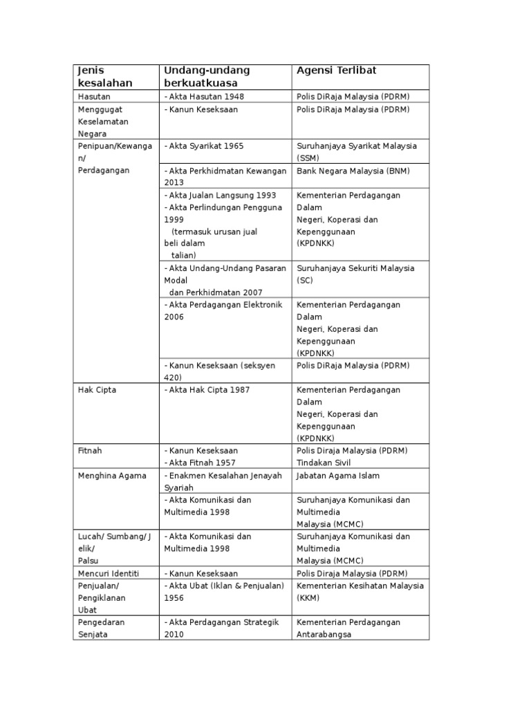 Jenis Kesalahan Dan Hukuman Yang Dikenakan Di Malaysia