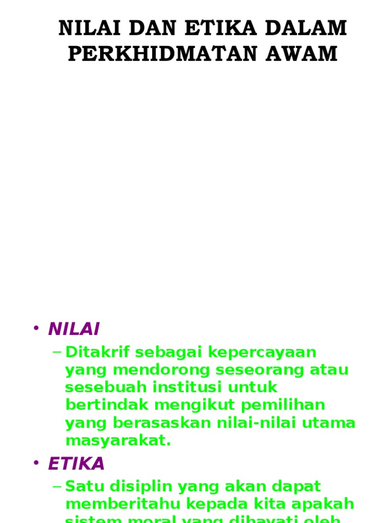 Nilai Dan Etika Dalam Perkhidmatan Awam Ppt Download