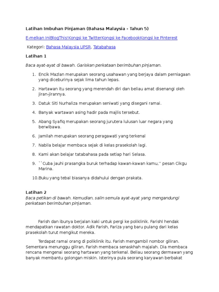 3 _____ buku itu mengulas sedikit pandangan penulis tentang sukan di Malaysia. Imbuhan Pinjaman Nota Docx. Latihan Imbuhan Pinjaman Interactive Worksheet.