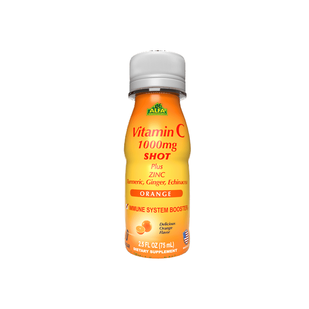 Alfa Vitamins Vitamin C 1 000mg Shot Plus Turmeric Ginger Echinacea Immune System Booster Fight The Common Cold Orange Flavor 2 5 Fl Oz Individual Bottles Walmart Com Walmart Com