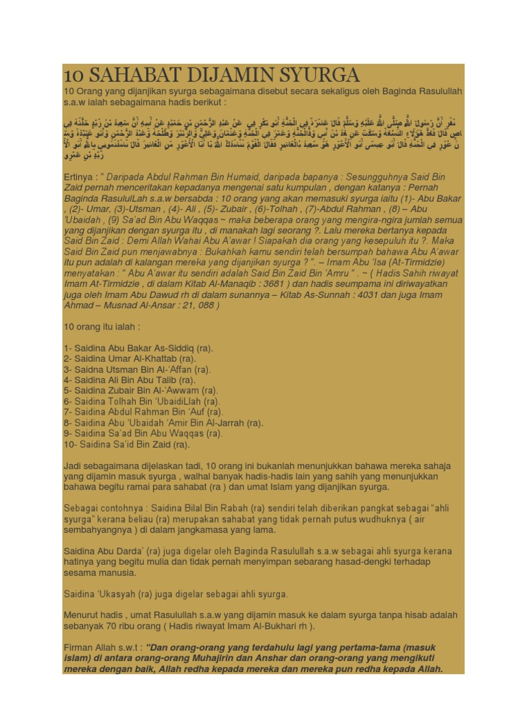 10 Sahabat Dijamin Surga Manfaat Bersahur Dan 10 Sahabat Dijamin Syurga Youtube Sejumlah Sahabat Nabi Dijamin Masuk Surga Karena Amalan Dan Kemuliaannya Putrineptunus