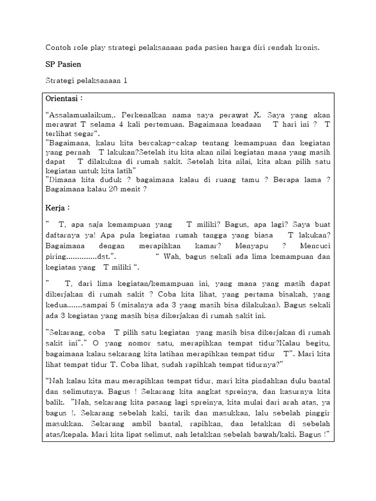Contoh Role Play Strategi Pelaksanaan Pada Pasien Harga Diri Rendah Kronis