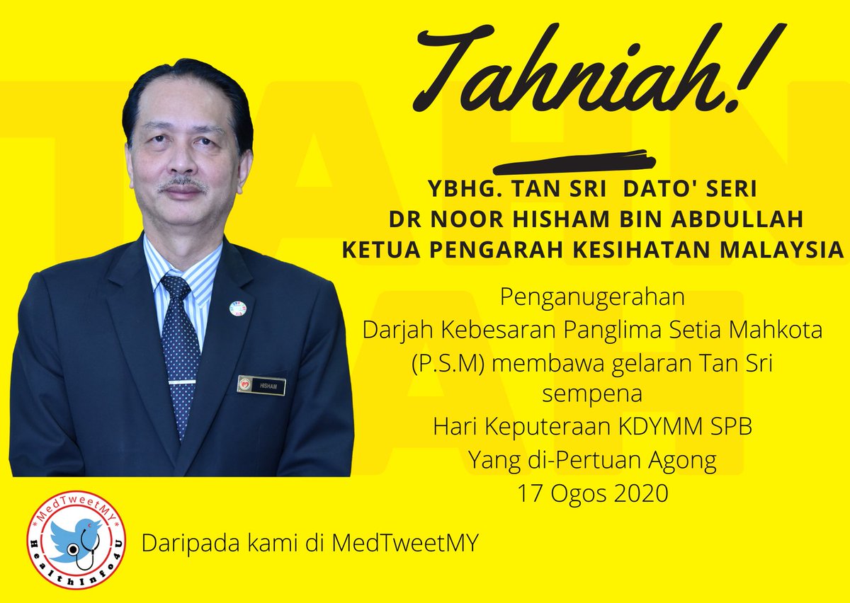 Setinggi Tinggi Tahniah Kepada Ybhg Tan Sri Dr Noor Hisham Abdullah Ketua Pengarah Kesihatan Malaysia Atas Penganugerahan Darjah Kebesaran Pingat Panglima Setia Mahkota P S M Yang Membawa Gelaran Tan Sri Medicmesir