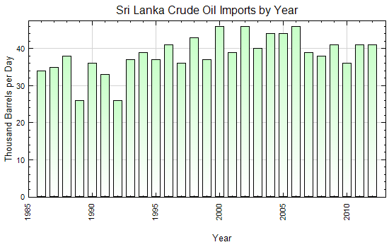 Sri Lanka Crude Oil Imports By Year Thousand Barrels Per Day