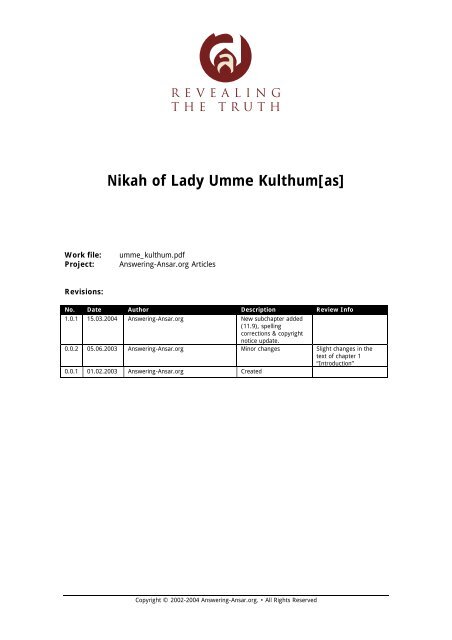 Nikah Of Lady Umme Kulthum As Knowledge