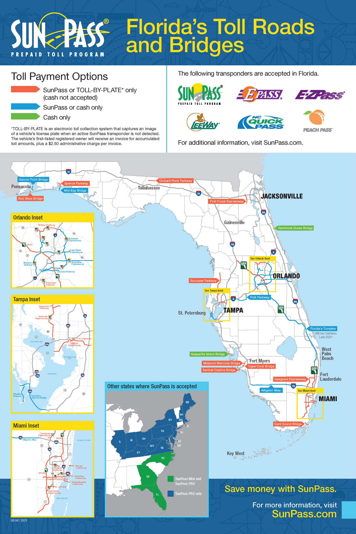 Select the boxes below to learn more details about tolls. SunPass also works in Georgia and North Carolina with hopes to add other states in the future. As of writing there are about 25 toll roads six managed lanes 13 toll causeways and bridges and six toll projects in Florida.